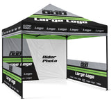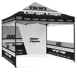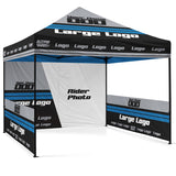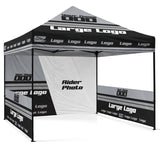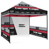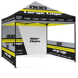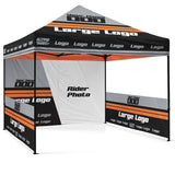 Submit 7 logos & your name/number to be placed on 4 panels of the canopy top, 2 halfwalls & 1 fullwall. Send a photo as well for the fullwall panel.