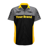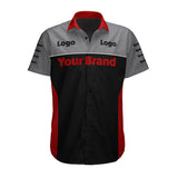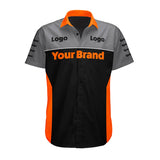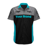 Custom dye sublimated unisex pit shirt in a button up style with the option of polo neck as well. 4.3 Oz polyester micro fiber material specialty treated with moisture wicking management & anti static finish (similar to motocross jerseys). Each pit shirt is custom printed your logos & color scheme on material then cut & sewn together to meet your company or teams liking.